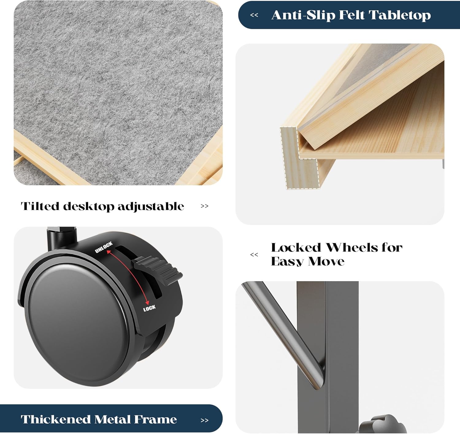 - 【Lockable Casters and Storage Shelf】 The puzzle board table is equipped with high-quality smooth universal wheels and two of them have locking designs, allowing for free movement between the living room and bedroom. After being fixed, it is as stable as a rock. There is a storage rack under the tabletop for storing your favorite puzzle accessories